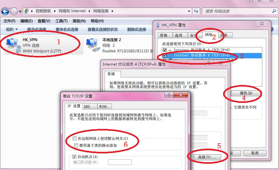 2.然后设定将vpn连接后默认连接依然是原来的网络连接